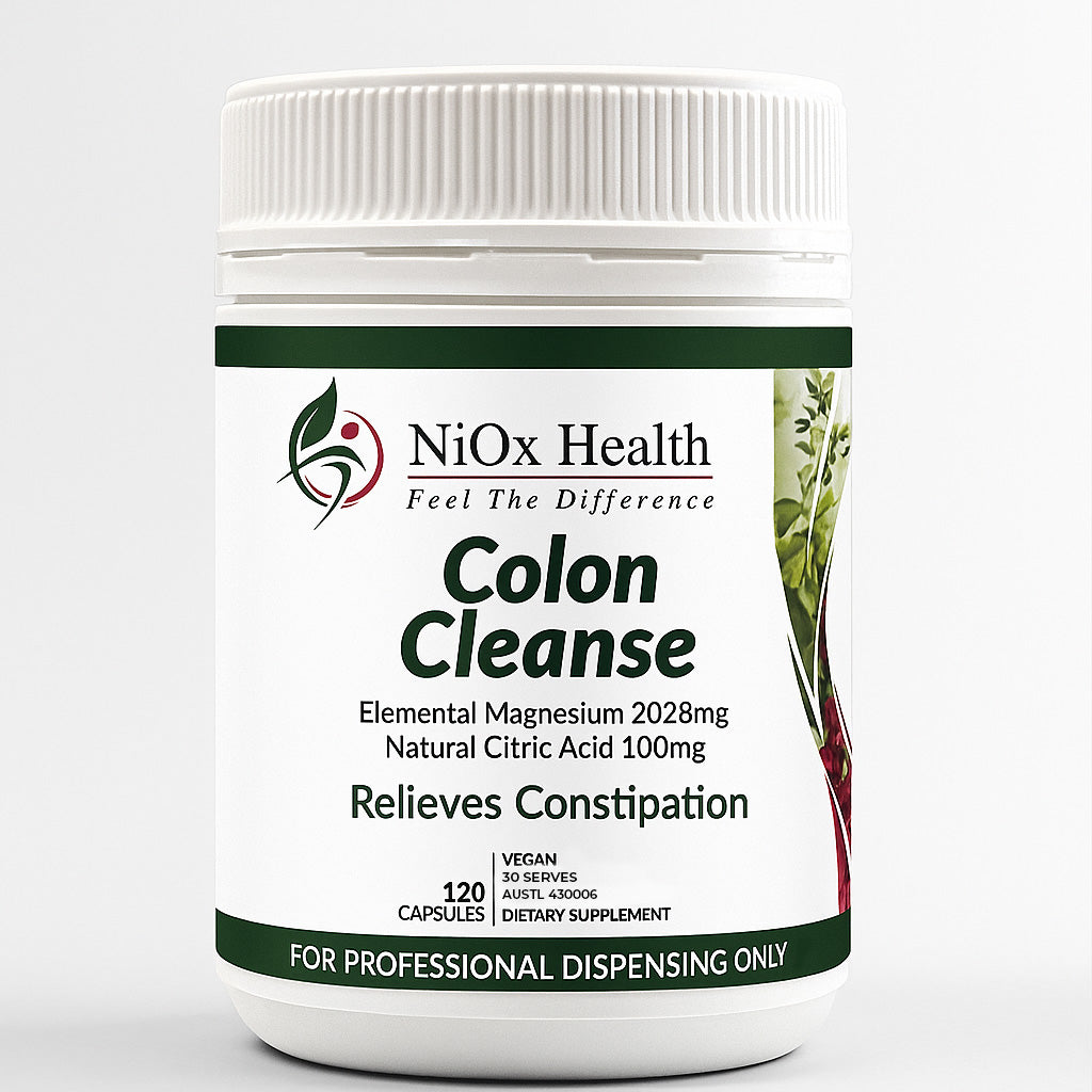 NiOX Colon Cleanse is a gentle, effective magnesium-based formula designed to support healthy bowel movements, regularity, and digestive comfort. It uses a high-grade magnesium oxide with natural citric acid to help draw water into the bowel and support natural cleansing.